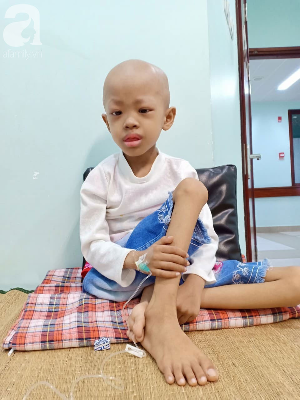 Suốt 2 năm chống chọi với căn bệnh u não ác tính, cơ thể bé Linh chỉ còn da bọc xương. Đã 7 tuổi nhưng Linh chỉ nặng 9kg. Sau hàng chục lần điều trị hóa chất, tóc của em rụng hết. Đôi chân tong teo, không thể cử động.