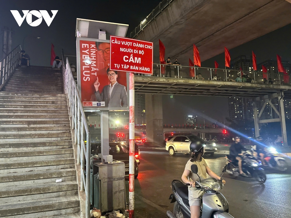 Mỗi tối, trên cầu vượt đi bộ tại nút giao Mai Dịch (Cầu Giấy, Hà Nội) lại ồn ào với các hoạt động ăn uống, ca hát, nói chuyện ầm ĩ kéo dài từ đêm cho tới sáng, làm ảnh hưởng đến an ninh trật tự của khu vực xung quanh.