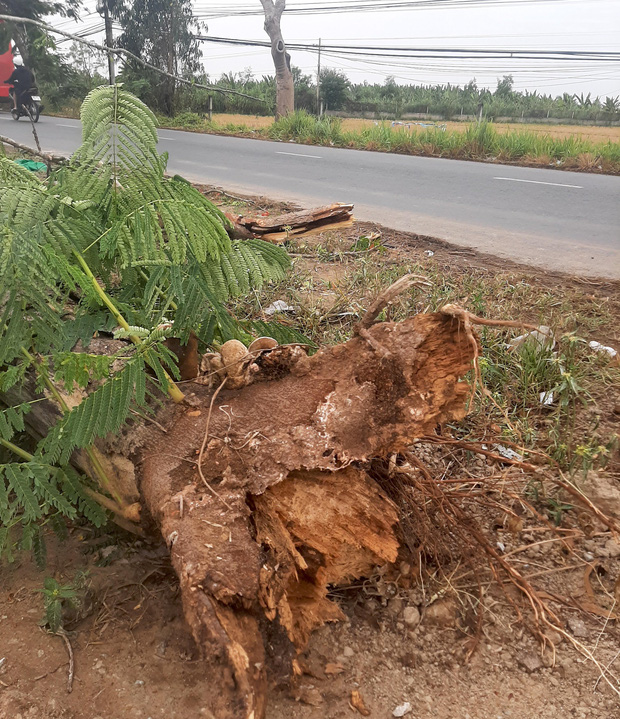 Theo quan sát của phóng viên, cây phượng ngã đè lên người chị Hân được trồng khoảng 20 năm, đường kính gốc khoảng trên 30cm, cành lá sum suê nhưng mục gốc nên gãy đứt ngang đoạn sát mặt đất.