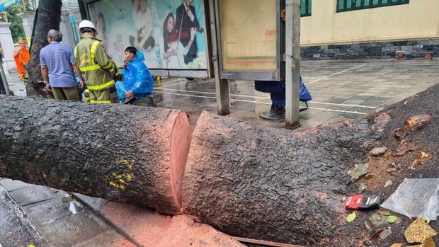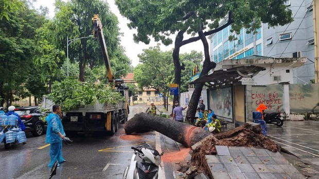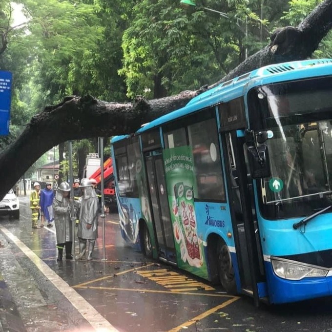 Khoảng 11 giờ 40 phút, ngày 5/8, tại điểm đón trả khách gần số nhà số 48 phố Tăng Bạt Hổ, cây cổ thụ có đường kính khoảng 70 cm, phần gốc đường kính khoảng 1m, đã bật gốc trong mưa lớn, đổ đè làm bẹp phần nóc xe buýt đang đón trả khách tại đây.