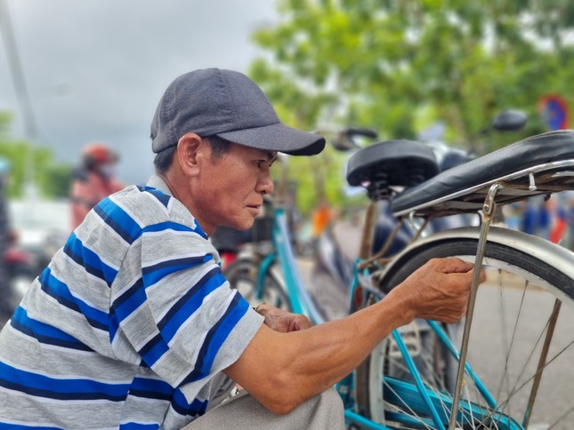 Chiếc xe đạp hai cha con đến trường mỗi ngày được quận hỗ trợ theo diện khó khăn từ khi con anh học lớp 6. Ngồi trước trường chờ con, anh tỉ mẩn kiểm tra vành, lốp, xích…, không để xảy ra sự cố trong những ngày quan trọng này. Anh ngại ngùng, bảo mình không biết đi xe máy nên chỉ còn đường đạp xe chở con đi học . Cũng may anh làm “thợ đụng”, thành thử không quá áp lực thời gian, còn vợ làm ở trạm y tế không thể đưa đón con mỗi ngày.