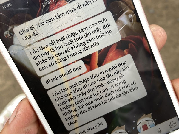 Trên chiếc điện thoại cũ đã vỡ nát, dòng tin nhắn cuối cùng của bé N. gửi cho cha vẫn còn nguyên vẹn, đầy hồn nhiên và tha thiết: