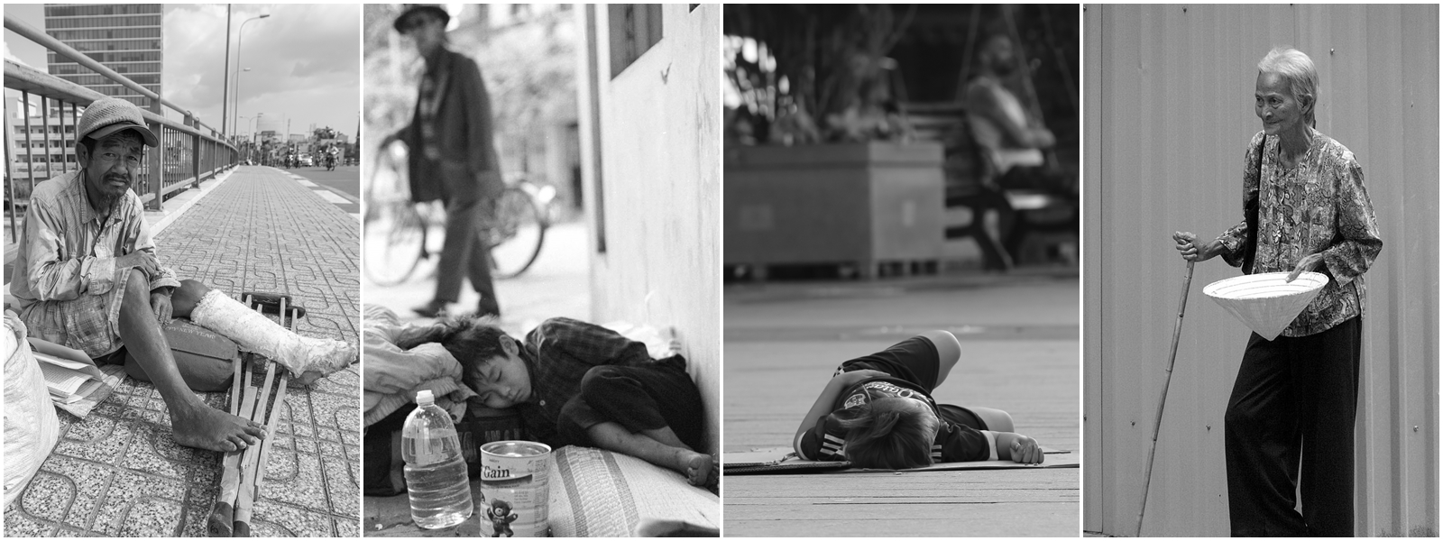 | Sự thay đổi của người đàn ông lúc xin tiền và khi nghỉ ngơi. |
