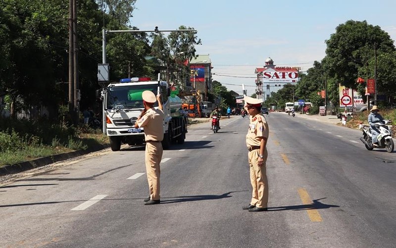 Hiện CSGT đang chốt chặn và hướng dẫn các phương tiện Bắc-Nam rẽ vào đường tránh thị xã Hồng Lĩnh tiếp tục hành trình.