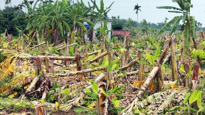 Chỉ sau vài giờ đồng hồ, hơn 2.000 cây chuối tại khu vực này bị đốn ngã với thiệt hại mà bà Nga ước tính trên 1 tỉ đồng.