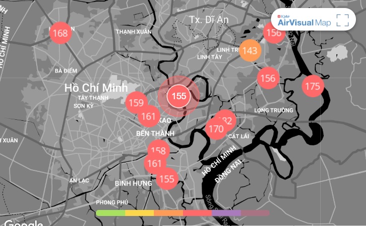 Tại TP.HCM, chất lượng không khí được Air Visual cảnh báo tốt hơn Hà Nội, giá trị AQI là 168 – tương đương ngưỡng cảnh báo màu đỏ, xen lẫn màu cam. Dự báo, trong ngày hôm nay chất lượng không khí cải thiện - ở ngưỡng màu vàng. Người dân có thể tạm thời yên tâm.