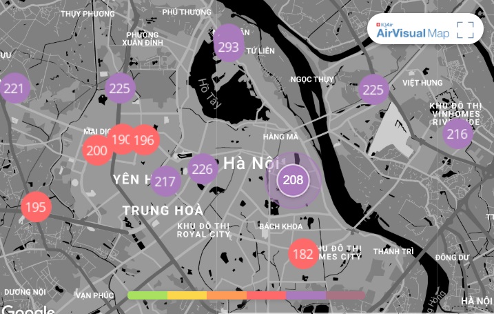 Air Visual xếp hạng Hà Nội đứng thứ 4/95 thành phố có mức độ ô nhiễm không khí nhất thế giới, chất lượng không khí tệ hơn tất cả các thành phố của Trung Quốc; TP.HCM xếp hạng thứ 19/95 thành phố ô nhiễm không khí nhất thế giới.