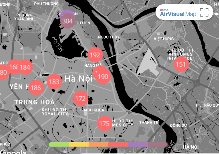 Ở mức chỉ số này, Thủ đô Hà Nội lại lọt vào top 10 thành phố ô nhiễm không khí nhất toàn cầu, theo khảo sát của Air Visual. Một thông tin đáng buồn.
