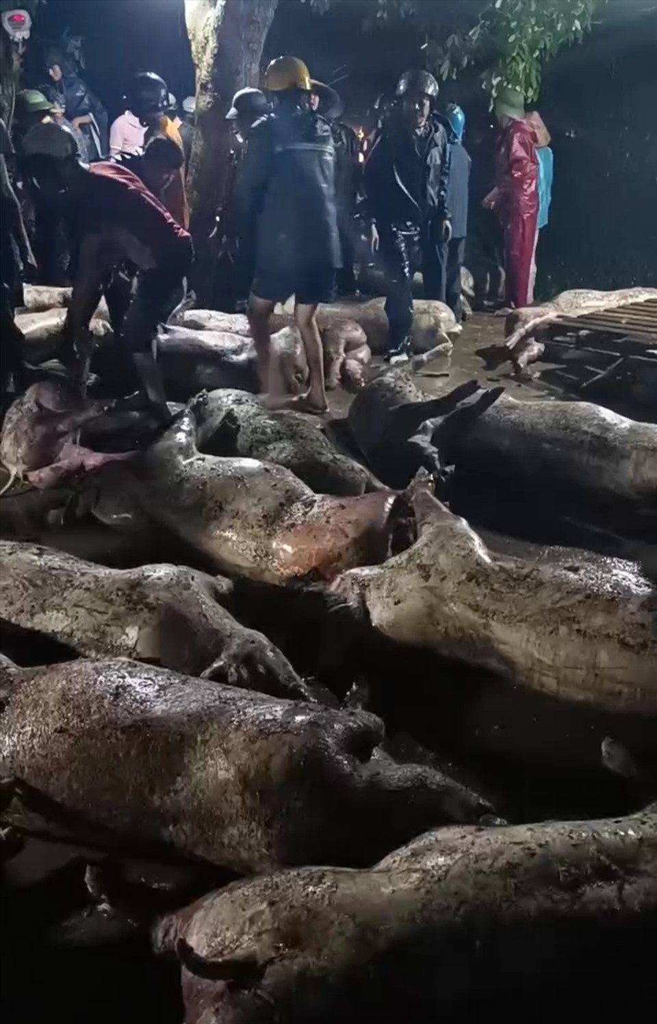 "Với giá hiện nay khoảng 52.000 đồng/1kg lợn hơi, khoảng 30 tấn lợn của anh ấy sắp xuất bán ít nhất cũng phải thu về 1,6 tỉ. Vậy mà đến lúc gần được ăn rồi trời còn không cho", một người dân khác xót xa.