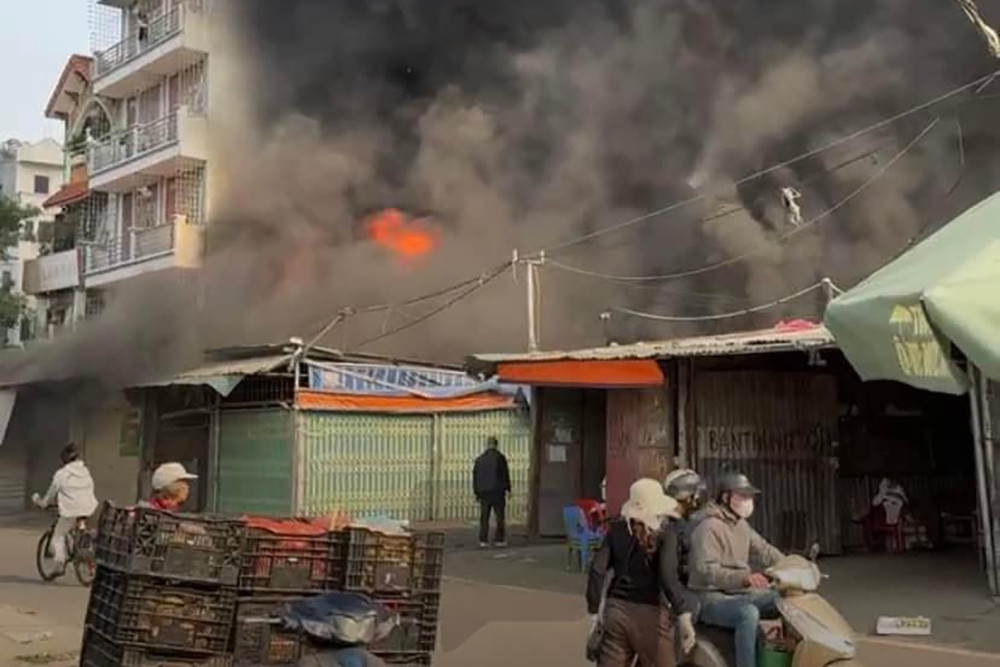 "Ban đầu tôi thấy mùi khét và khói bốc ra từ trong một ki ốt, chỉ khoảng 5 phút sau lửa lan rất nhanh và khói đen đặc bốc lên", nhân chứng cho biết.