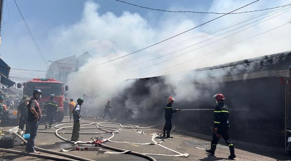 Thông tin ban đầu, khoảng gần 12h hôm nay (31/1), người dân phát hiện lửa bốc lên tại dãy ki-ốt bán trái cây sau lưng chợ Long Khánh.