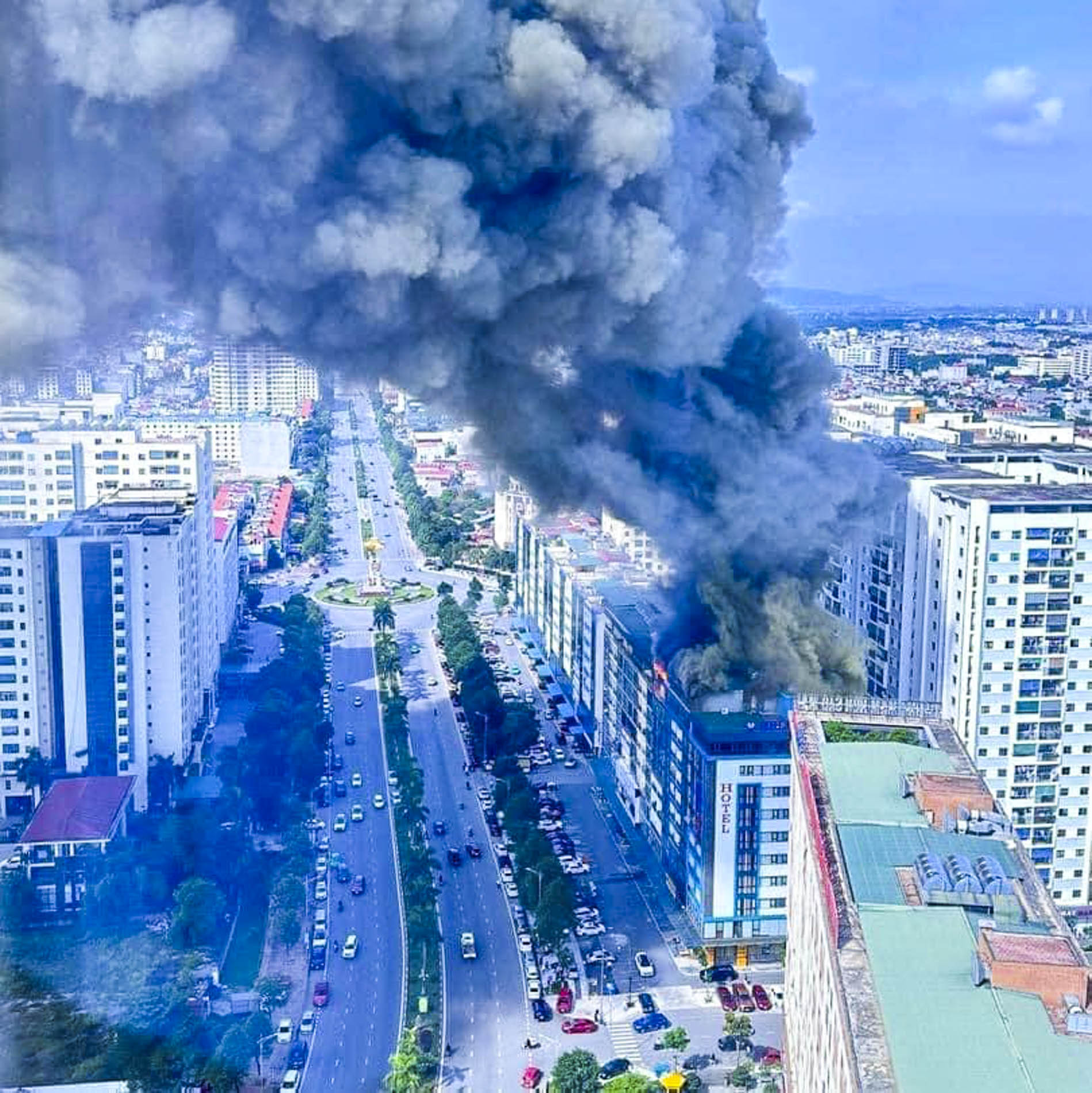 Theo báo Lao Động, vụ cháy xảy ra vào chiều 22/6, tại khu nhà 9 tầng thuộc chung cư Cát Tường, phường Võ Cường, TP Bắc Ninh, tỉnh Bắc Ninh. Khói và lửa ngùn ngụt bốc lên ở tầng thượng của chung cư.