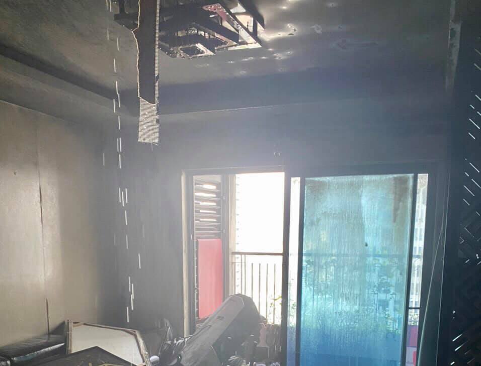 Căn hộ xảy ra cháy rộng hơn 100 m2, 3 căn phòng của căn hộ đã bị ngọn lửa làm hư hỏng nặng, trong đó căn phòng ngủ bị cháy rụi vào phần gạch. Nhiều đồ đạc bị thiêu rụi, hệ thống điều hòa ở ngoài hành lang cháy đen.