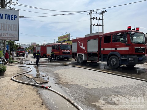 Nhận thông tin, Cảnh sát PCCC TP Thủ Đức, Khu vực 1, Khu 2 của Phòng cảnh sát PCCC Công an TPHCM đã điều nhiều xe nước cùng cán bộ chiến sĩ tiếp cận hiện trường.