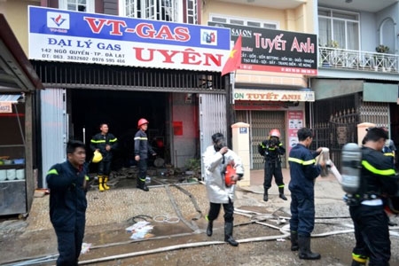 Vụ hỏa hoạn xảy ra vào khoảng 17g30 ngày 15-3, tại đại lý gas trên đường Ngô Quyền, P.5, TP Đà Lạt tỉnh Lâm Đồng.