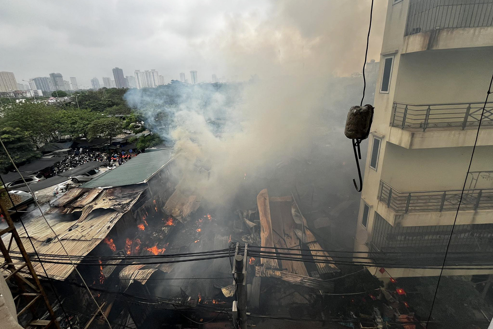 05/04/2024 20:36Cháy dãy lán tạm chứa cốt pha ở Hà Nội, khói đen cuồn cuộn bốc lên