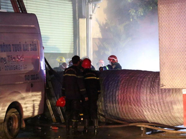 Theo Tuổi Trẻ, đến 22h15, hiện trường vẫn đang được cơ quan chức năng phong tỏa để dập lửa. Trong quá trình chữa cháy, hai cảnh sát bị ngạt khói được đưa ra bên ngoài. Cả khu vực vẫn trong tình trạng cúp điện, lực lượng chức năng tiếp cận đám cháy từ nhiều hướng, nỗ lực dập lửa.