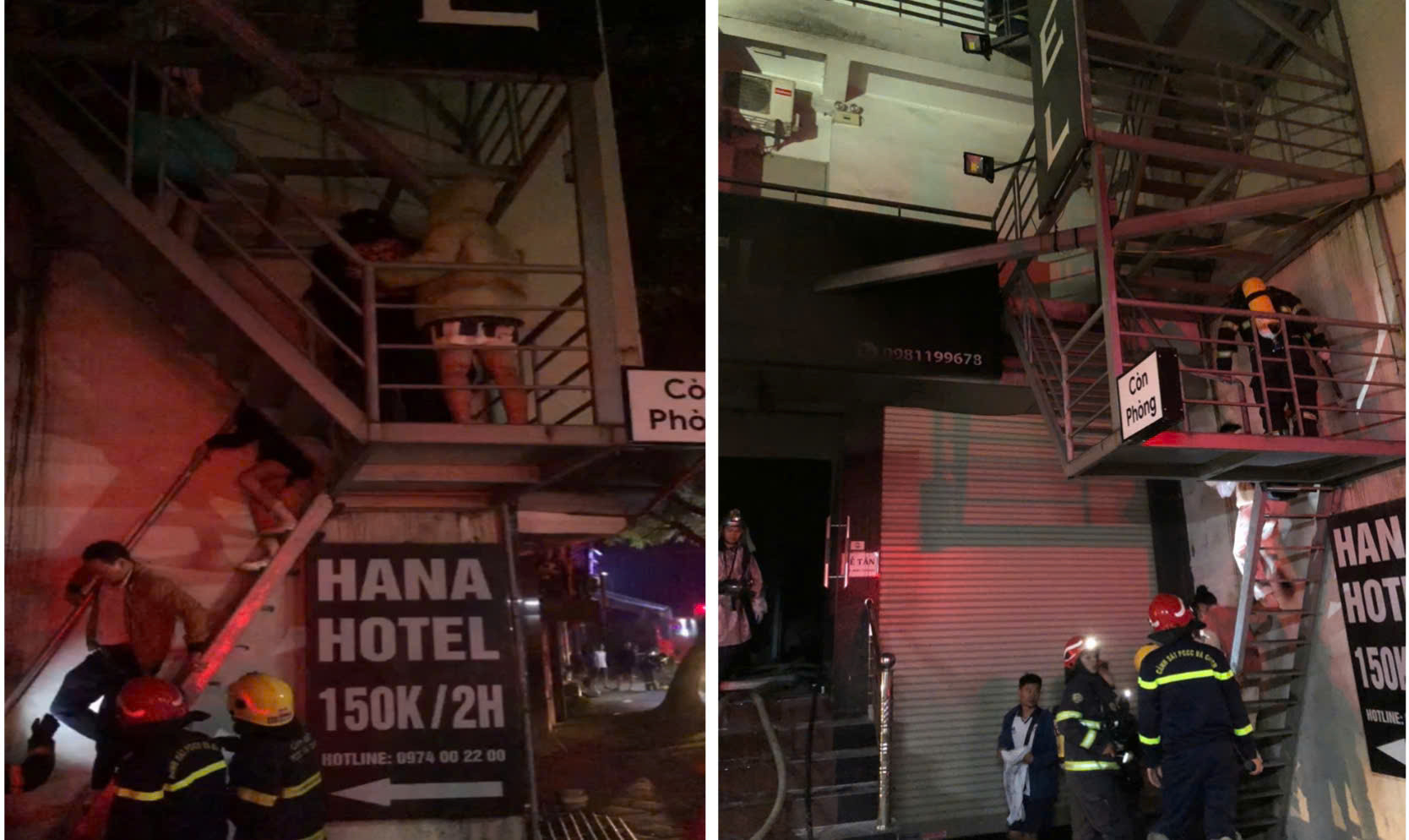 Đồng thời, lực lượng Cảnh sát PCCC&CNCH cũng tiếp cận các tầng 3, 4, 5, 6 là nơi đang có đông người tập trung để động viên, trấn an tinh thần và khẩn trương hướng dẫn, hỗ trợ những người mắc kẹt thoát nạn qua cầu thang sắt ngoài nhà.