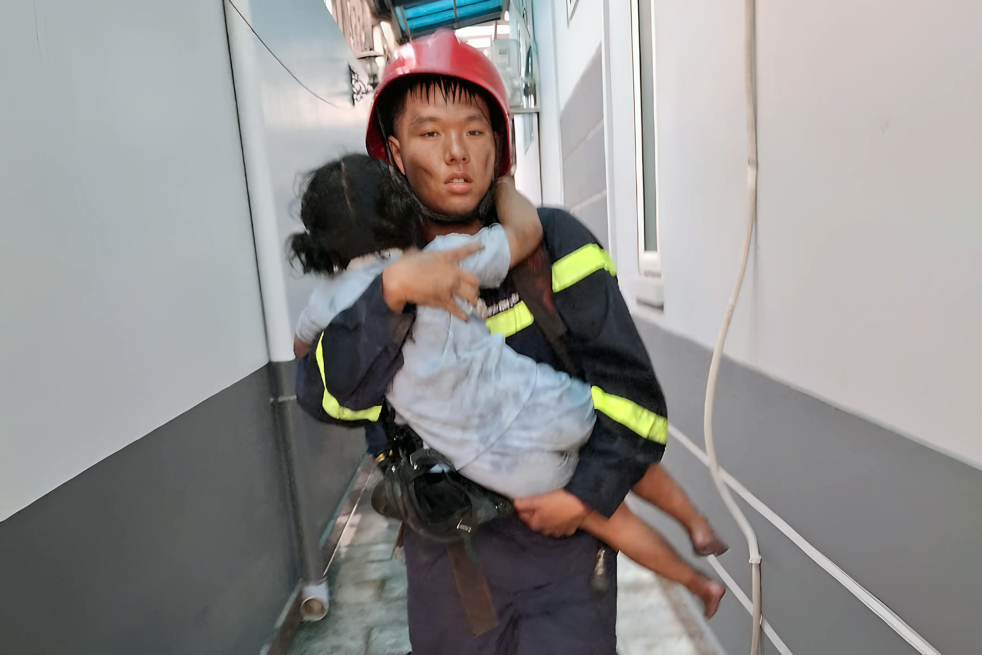 Đám cháy lớn ở một khách sạn (TP Thủ Đức, TPHCM) khiến nhiều người bị kẹt bên trong. Cảnh sát đã tiếp cận, giải cứu 6 người, trong đó có 2 trẻ em.