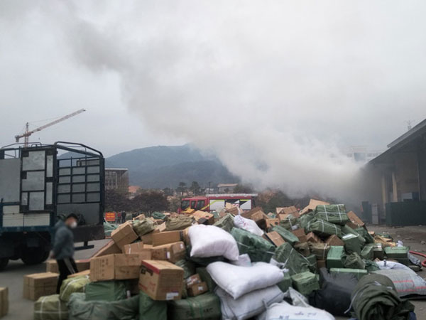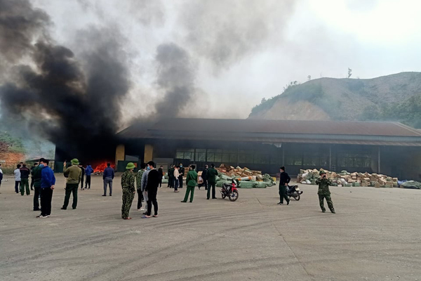 Khoảng 8h ngày 20/1, kho tạm của Công ty TNHH một thành viên đầu tư xuất nhập khẩu Phúc An nằm cạnh nhà kiểm hóa cửa khẩu Bắc Phong Sinh, huyện Hải Hà, bốc cháy.