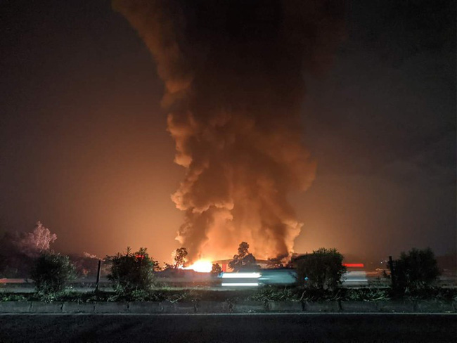 Do kho phế liệu có nhiều loại dễ cháy nên ngọn lửa bén rất nhanh, lan rộng, bốc cao sáng rực cả một góc trời. Sau hơn 1 giờ, ngọn lửa cơ bản đã được các lực lượng chức năng dập tắt.