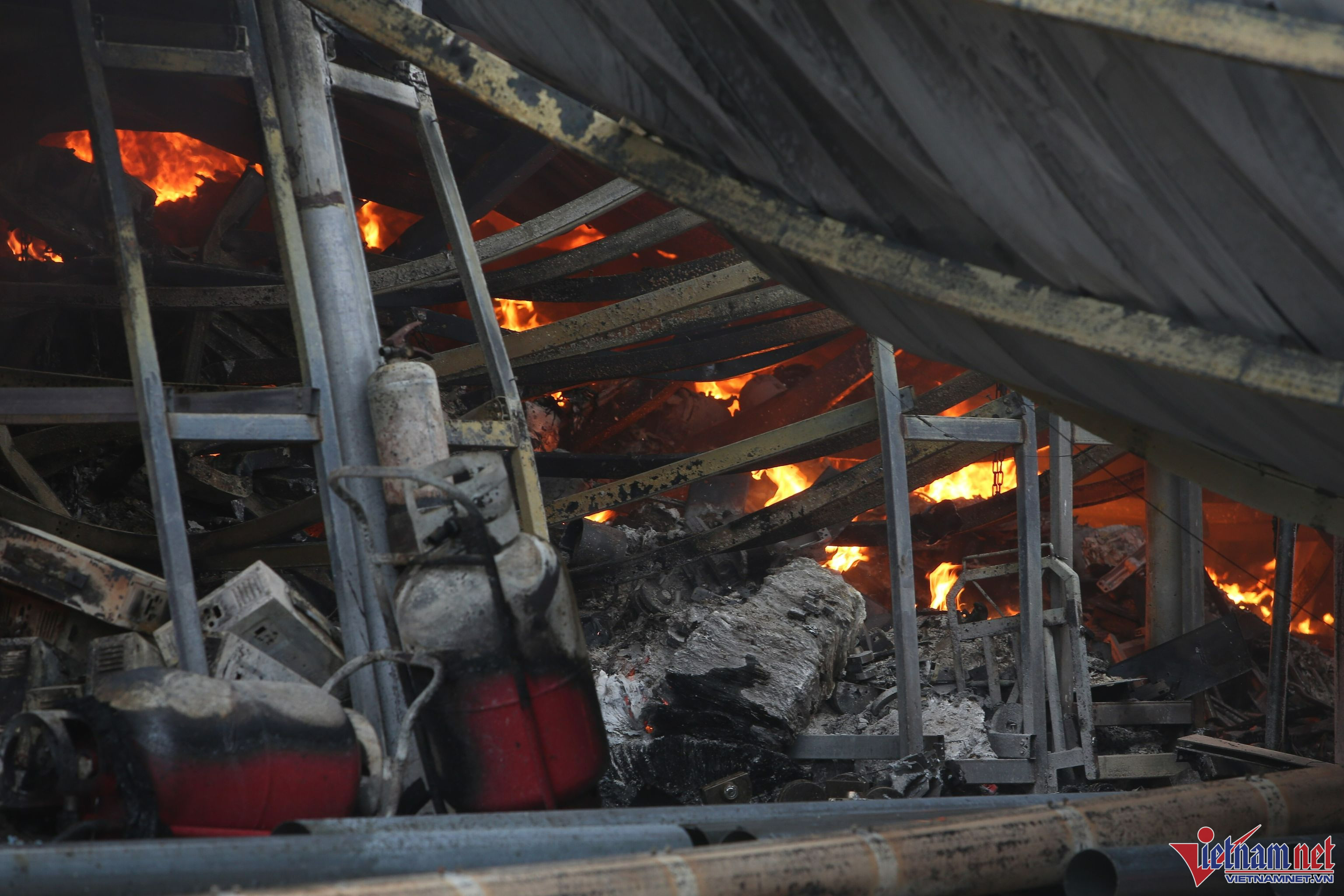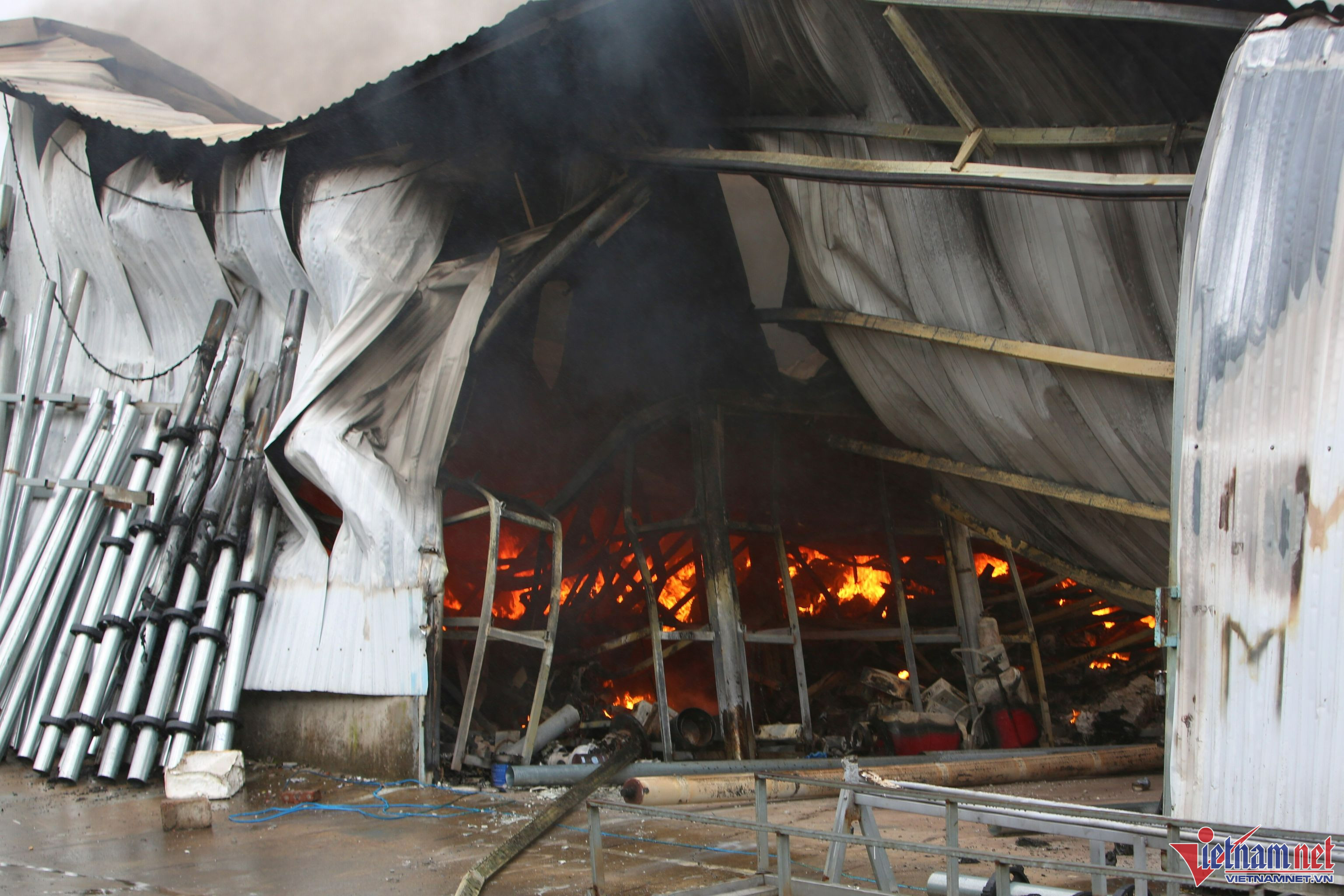 Đến khoảng 8h45, lực lượng chức năng cơ bản khống chế được ngọn lửa. Có ít nhất 2 nhà kho đã bị thiêu rụi.