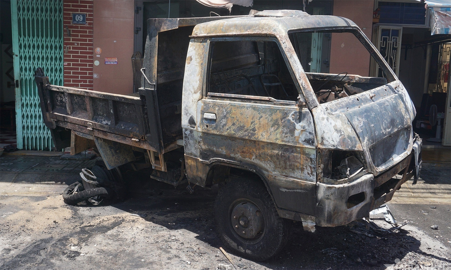 Vụ cháy không gây thiệt hại về người nhưng khiến chiếc xe tải ben bị cháy đen, một lốp xe bị biến dạng; và mặt tiền nhà dân số 18 Bàu Hạc 5 cũng bị lửa phá hủy một phần.