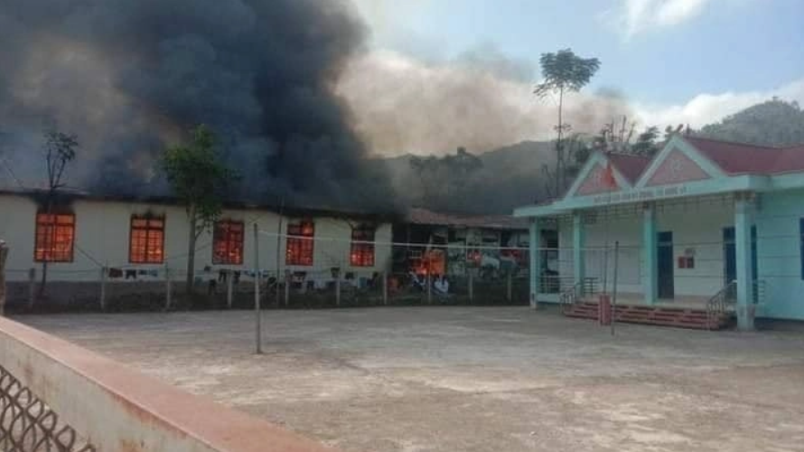 Ngọn lửa lan nhanh cũng thiêu đốt 2 dãy nhà bán trú của nhà trường, cùng với đó là chăn màn, sách vở, đồ dùng học tập của các em học sinh.
