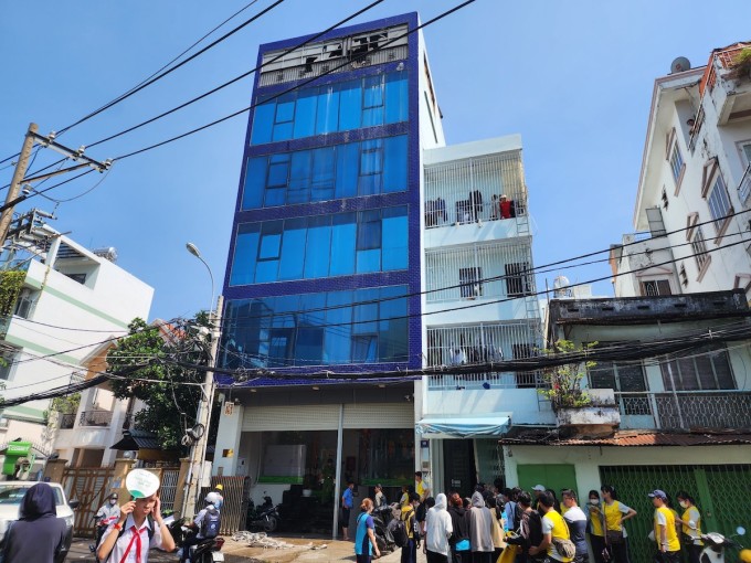 Gần 11h, khói lửa bốc lên từ tầng 6, khu vực sản xuất nữ trang vàng, bạc tại toà nhà rộng khoảng 1.000 m2 của công ty trang sức công nghệ 3D trên đường Nguyễn Tuân, phường 3. Mặt ngoài của toà nhà được ốp kính.