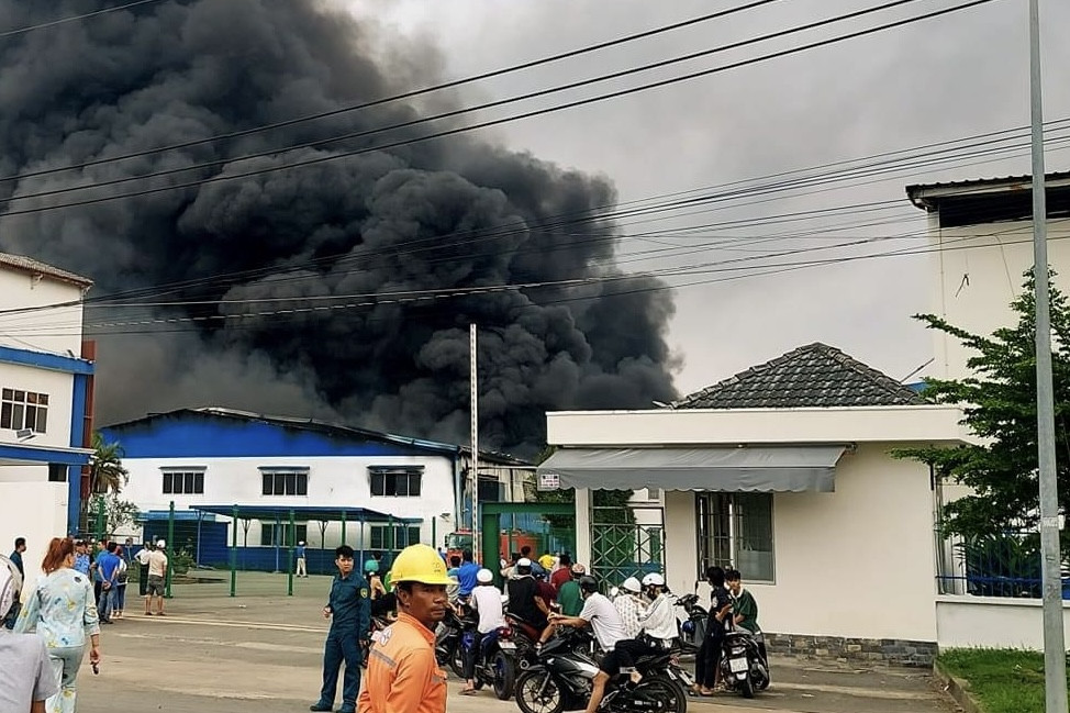 Tuy nhiên, do bên trong khu vực nhà xưởng có nhiều thùng hóa chất, nguyên vật liệu giày dép từ nhựa, cao su nên ngọn lửa nhanh chóng bùng phát dữ dội. Cột khói đen bao trùm toàn bộ khu vực khiến nhiều hộ dân sống xung quanh khiếp sợ.