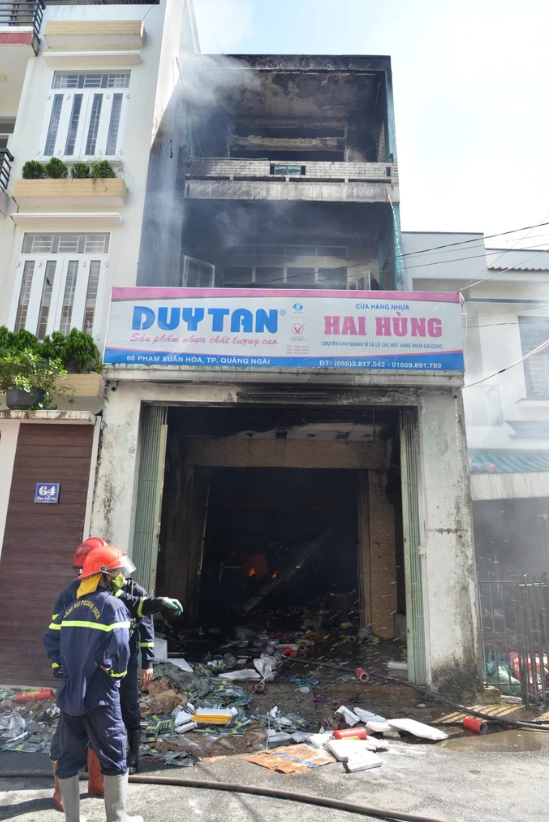 Ngay sau nhận được tin báo, lực lượng PCCC Công an tỉnh Quảng Ngãi đã huy động nhiều xe chữa cháy chuyên dụng, trong đó có 1 xe thang và hàng chục cán bộ, chiến sĩ đến hiện trường để chữa cháy. Do cửa hàng chứa nhiều vật liệu bắt cháy nhanh nên ngọn lửa lan rộng, cháy ở cả 3 tầng nhà.