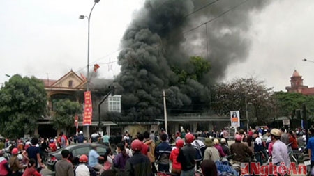 Trưa 28/1, tại cửa hàng tạp hóa, nhà riêng chị Nguyễn Thị Quế (khối 4 thị trấn Quán Hành huyện Nghi Lộc, tỉnh Nghệ An) đã xảy ra vụ hỏa hoạn, thiêu rụi cả căn nhà khiến khu phố hoảng loạn.