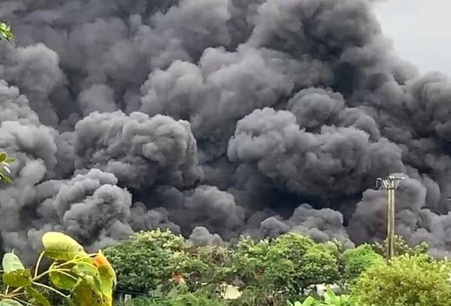 Do bên trong kho xưởng có nhiều vật liệu dễ cháy (chủ yếu là vải) nên ngọn lửa nhanh chóng lan rộng, cột khói đen bốc cao khiến người dân ở xa cũng trông thấy.