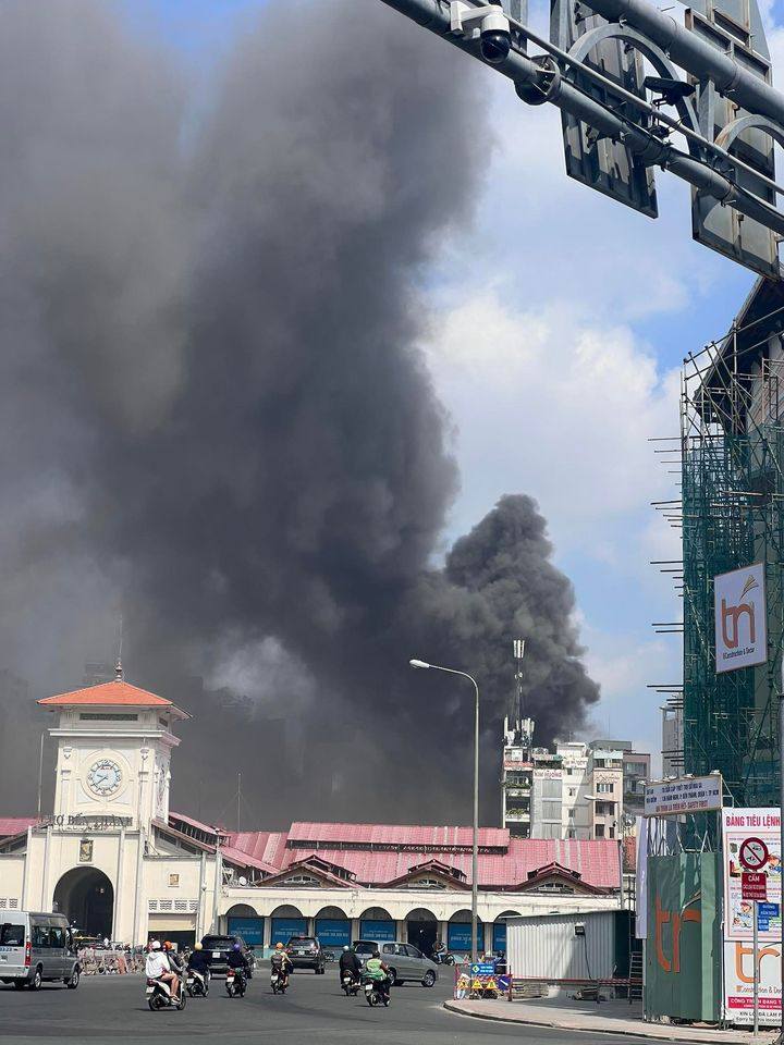 Đám cháy lớn kèm theo khói bao trùm khu vực. Nhận tin báo, lực lượng Cảnh sát PCCC và cứu nạn cứu hộ (PC07) Công an TP.HCM và PCCC quận 1 điều nhiều xe chữa cháy đến hiện trường.