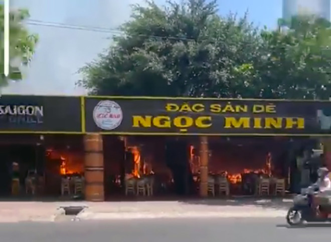 Khói lửa bùng lên dữ dội tại quán lẩu dê ở TP Mỹ Tho, Tiền Giang làm thiệt hại nhiều tài sản.