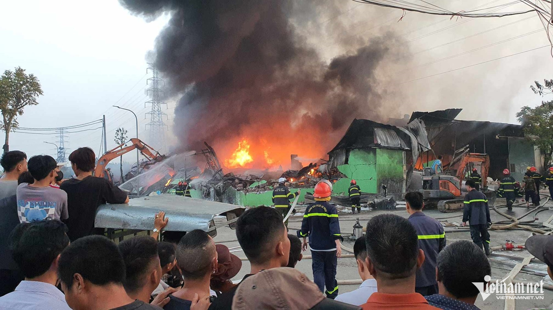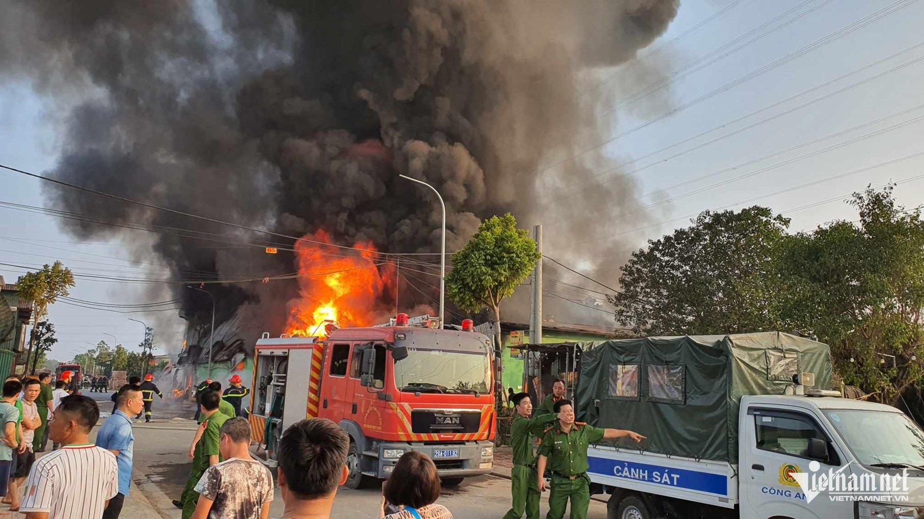 Tại hiện trường, ngọn lửa bốc cháy dữ dội kèm theo cột khói đen nghi ngút. Từ trong đám cháy phát ra một số tiếng nổ.