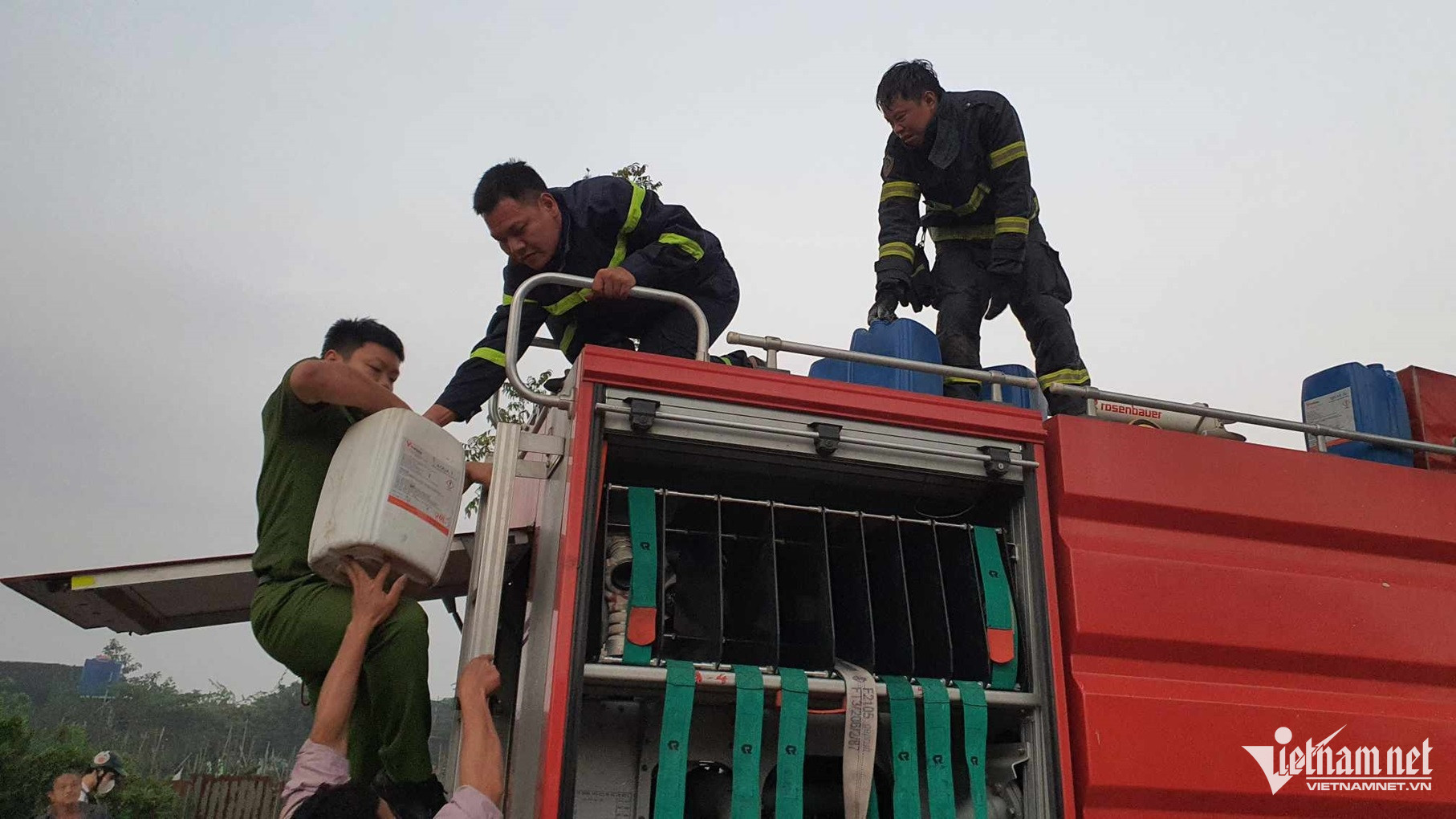 Đến 16h, lực lượng chức năng đã đến hiện trường để triển khai cứu hỏa. Hàng chục cán bộ chiến sĩ cùng 2 xe chữa cháy đang tập trung dập lửa.