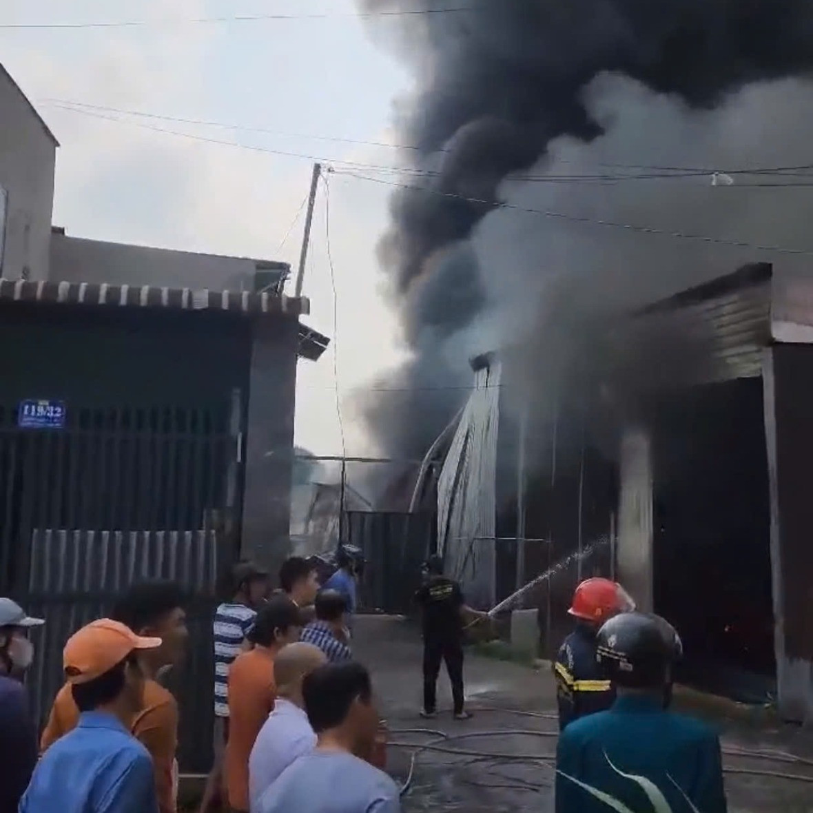 Phát hiện cháy, nhiều công nhân cùng người dân xung quanh mang bình chữa cháy tiếp cận, dập lửa, đồng thời di chuyển nhiều bình khí nén ra ngoài.