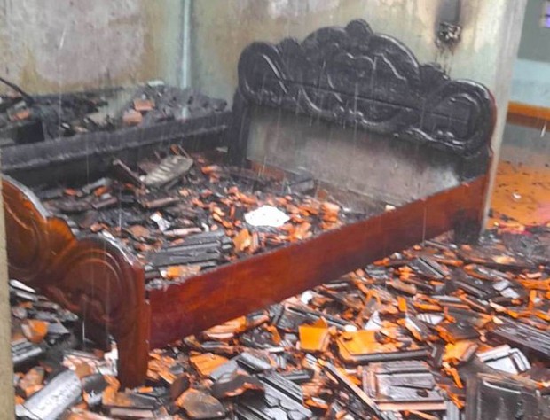 Vụ hỏa hoạn xảy ra vào trưa 16/3 tại căn nhà của gia đình anh N.V.Q. (trú xóm Nam Lâm, xã Nghĩa Lâm).