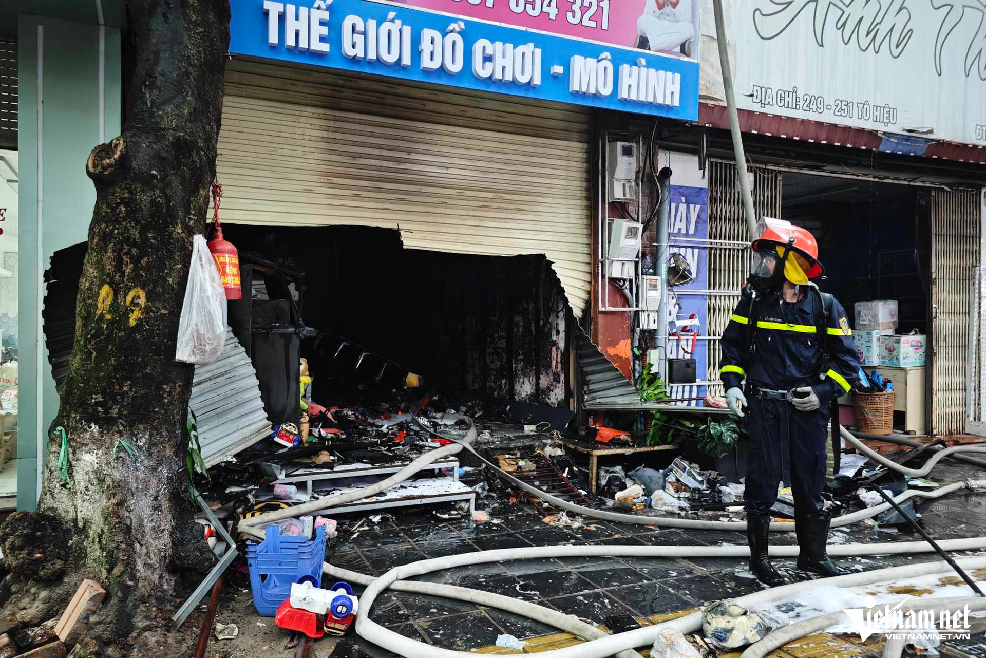 Căn nhà xảy ra hỏa hoạn cao 4 tầng, 1 tum. Bên trong tầng 1 là nơi kinh doanh đồ chơi, đồ chơi xe điện, xe đạp, xe đẩy...