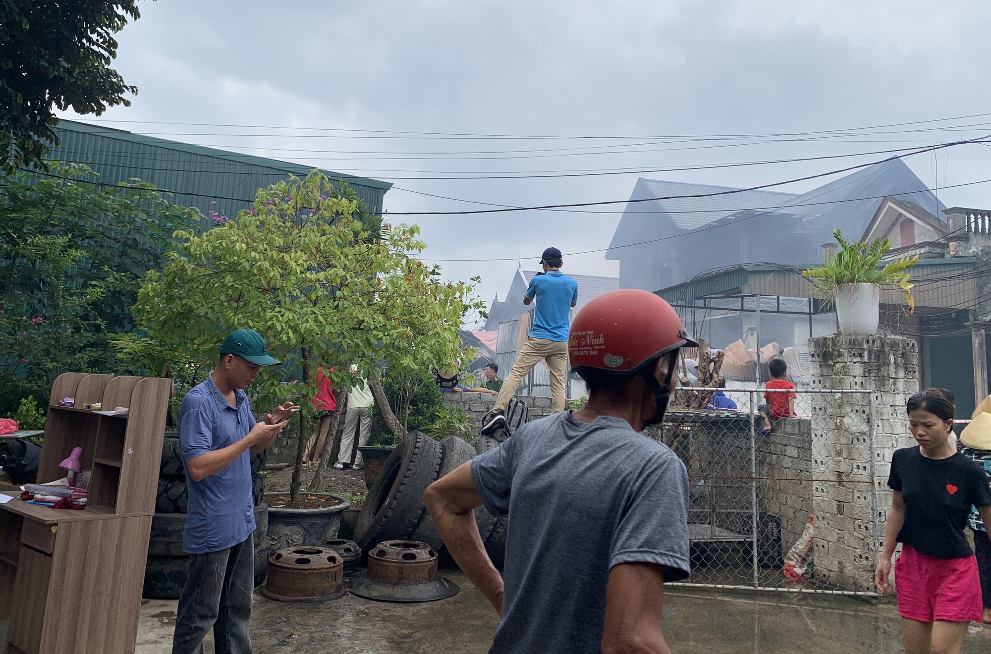 Phát hiện đám cháy, người dân địa phương đã dùng bình chữa cháy mini đến ứng cứu nhưng bất thành. Chỉ ít phút sau, lửa và khói đen đã bao trùm nhà xưởng.