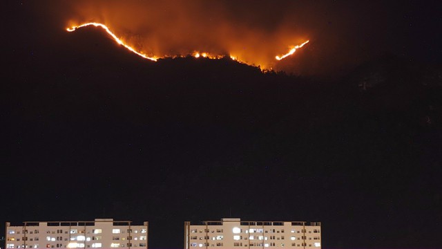 Thời tiết hiện nay không có mưa nhưng đang có gió thổi mạnh. Do đó đám cháy lan dần về phía Đông nơi có người dân sinh sống.
