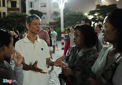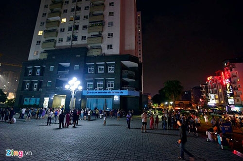 | Hàng trăm người dân đã chạy xuống sảnh tòa nhà. |