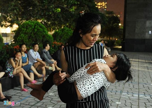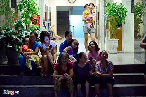 | Nhiều trẻ nhỏ mệt mỏi ngủ trên tay người lớn. Tới 00h30, rất nhiều hộ dân đã phải sang nhà người thân tạm trú. Một số khác vẫn kiên trì ngồi chờ lực lượng chức năng hoàn tất khám nghiệm để về nhà. |