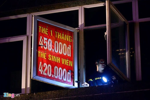 | Điện của tòa nhà bị cắt. 10 xe chữa cháy (có 2 xe thang) cùng gần 100 chiến sĩ được điều tới hiện trường. Cảnh sát phá cửa kính phun nước, dùng bình oxy và mặt nạ chống độc vào hướng dẫn người dân sơ tán. |