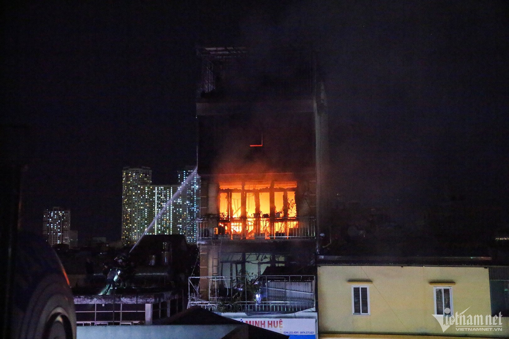 Ngọn lửa nhanh chóng bùng lên dữ dội, khói đen lan khắp căn nhà cao 6 tầng, 1 tum. Một số người đang bán hàng từ tầng 1 đến 3 của căn nhà đã nhanh chóng chạy ra ngoài, còn 4 người bị mắc kẹt ở tầng cao.
