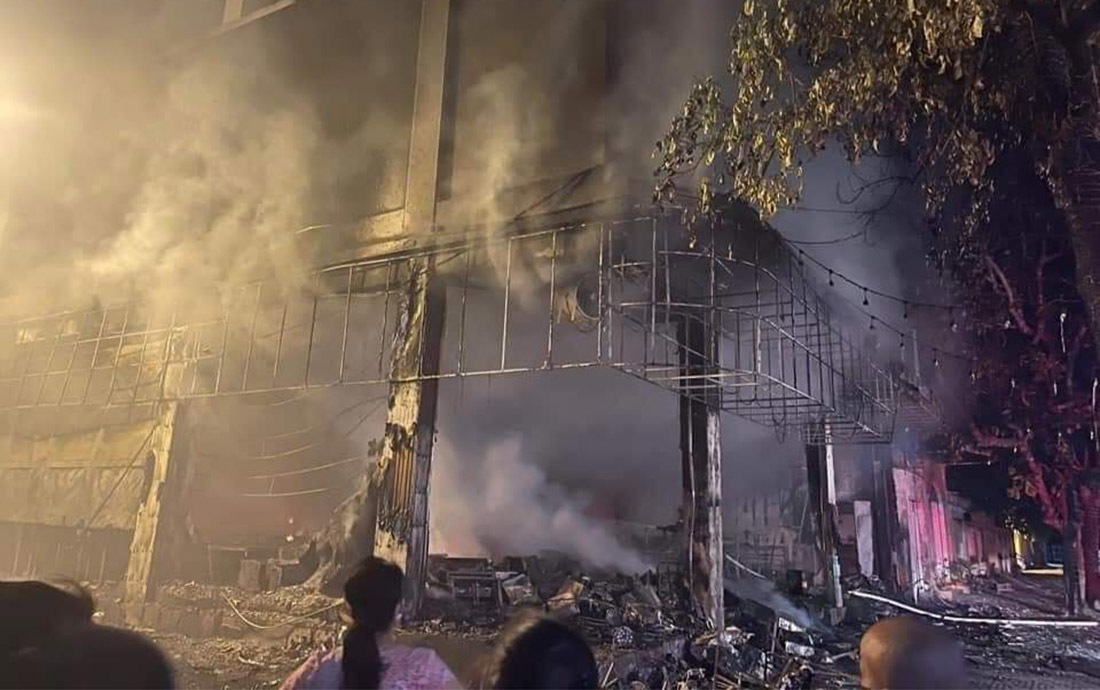 Khi nghe tiếng nổ lớn, mọi người chạy ra thì thấy phòng trà bùng cháy. Phòng trà được khoá bằng cửa cuốn nên lúc xảy cháy gây khó khăn cho việc tiếp cận vào bên trong.