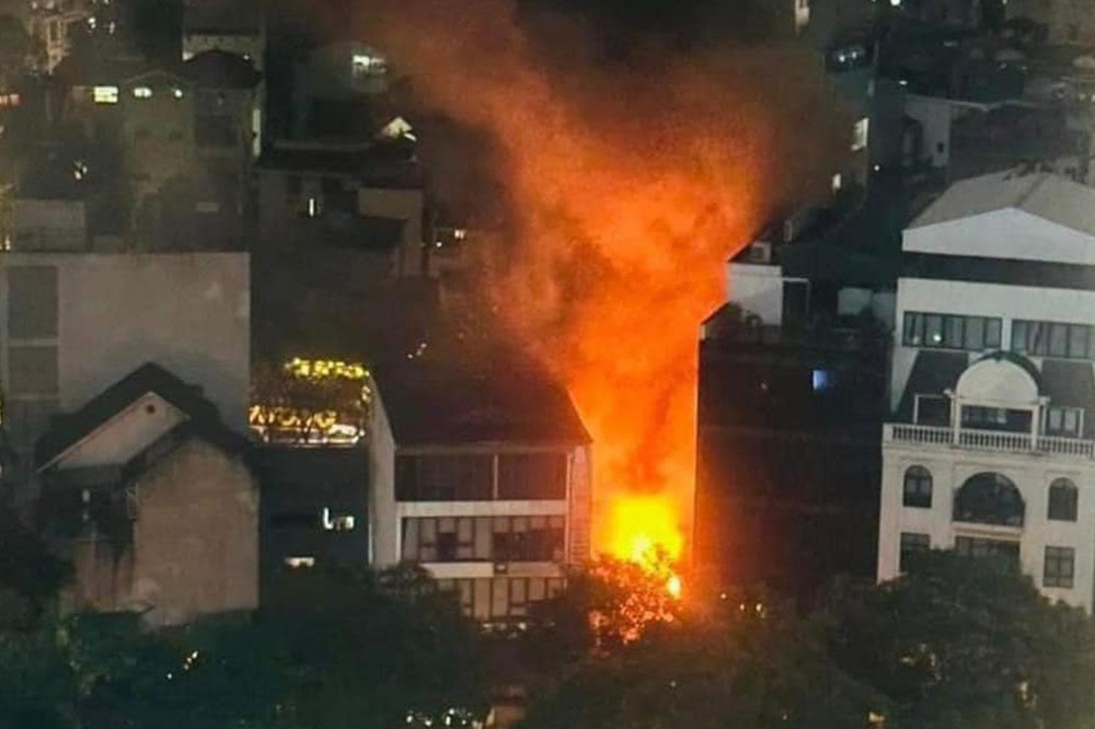 Lúc này, ngọn lửa tiếp tục bùng lên dữ dội từ tầng 2 của cơ sở kinh doanh và lan nhanh sang nhà hàng xóm có địa chỉ số 8 ngõ 4 phố Dịch Vọng Hậu.