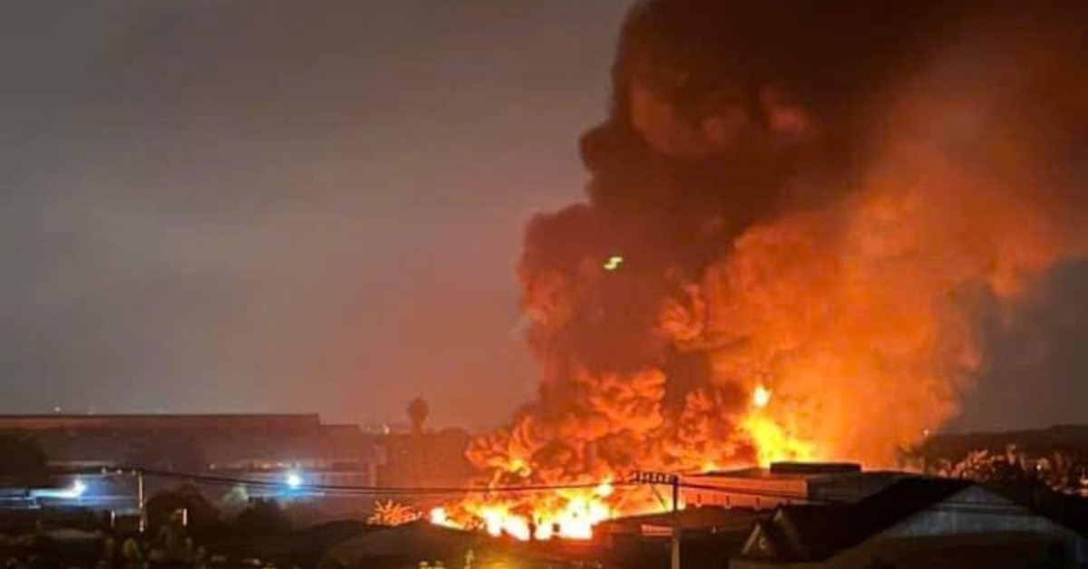Khi đi kiểm tra, người dân chứng kiến ngọn lửa đỏ rực kèm khói đen bao trùm nhà xưởng rộng khoảng 2.000m2.