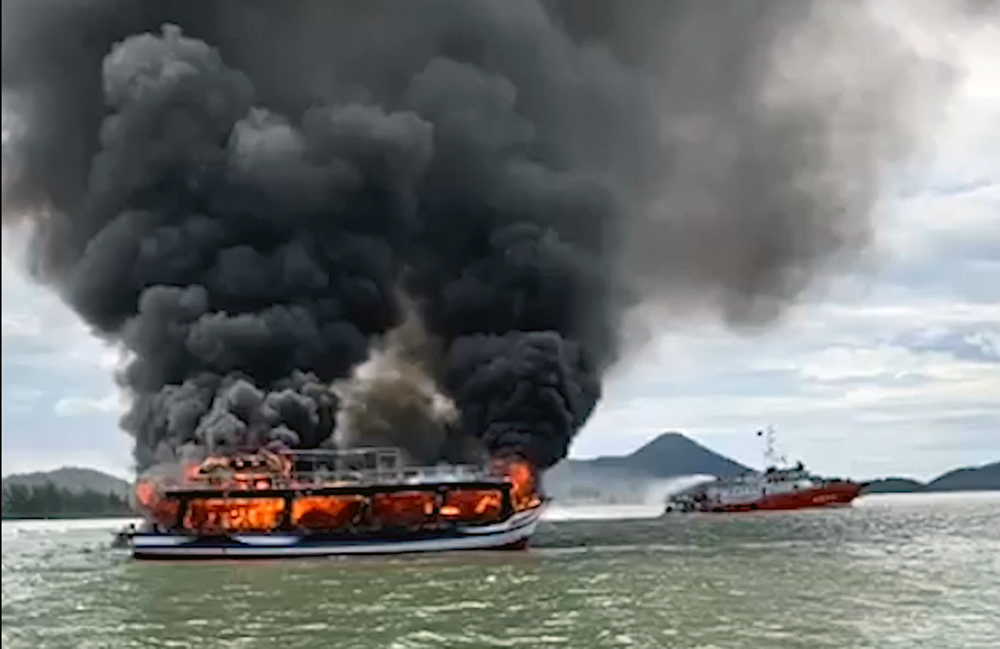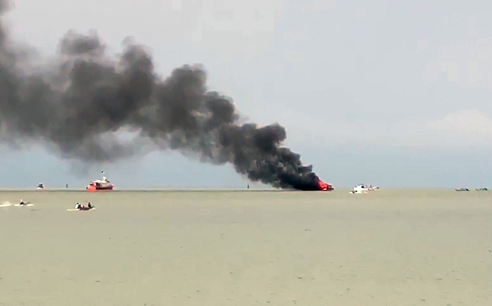 9h sáng 7/8, trên vùng biển Hà Tiên, tỉnh Kiên Giang, tàu khách Phương Nam bất ngờ bị bốc cháy dữ dội.